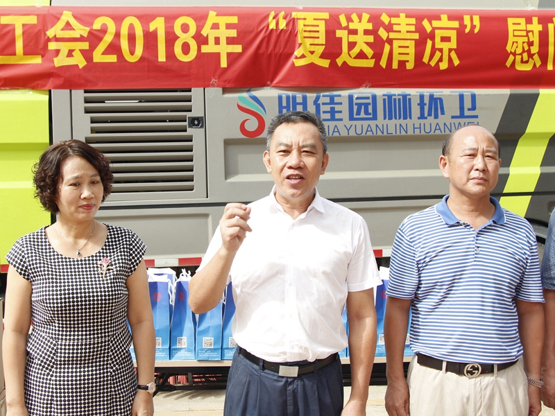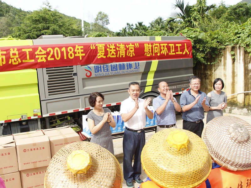“你們辛苦了!感謝你們?yōu)槿齺喪忻、游客?chuàng)造了一個干凈整潔的人居環(huán)境,為三亞市“創(chuàng)文鞏衛(wèi)”工作作出的突出貢獻(xiàn)。”。張羽飛代表三亞市總工會向集團(tuán)公司全體職工致以親切的慰問。他指出,環(huán)衛(wèi)工人頭頂列日,揮灑汗水,以“寧愿一人臟,換來萬家凈”的精神,為靚扮鹿城、建設(shè)國際化熱帶濱海旅游精品城市提供衛(wèi)生保障。他勉勵大家繼續(xù)發(fā)揚(yáng)三亞環(huán)衛(wèi)人的精神,勇當(dāng)尖兵的決心,提高環(huán)衛(wèi)作業(yè)質(zhì)量,在三亞市社會文明大行動和新一輪“創(chuàng)文鞏衛(wèi)”工作中作出新的更大貢獻(xiàn)。