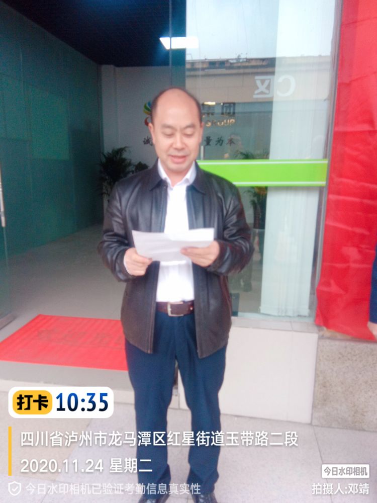 揭牌儀式過后,公司所有管理人員組織觀看了明佳集團(tuán)宣傳片,董事長(zhǎng)在會(huì)議上發(fā)表喬遷致辭,他對(duì)瀘州分公司喬遷表示祝賀,希望大家繼續(xù)發(fā)揮“誠(chéng)信立業(yè)、質(zhì)量為本、求真務(wù)實(shí)、追求卓越”的企業(yè)文化。用制度規(guī)范化管理、人性化管理,依賴廣大員工集體勞動(dòng)的智慧,打造一支“吃苦耐勞、任勞任怨、無私奉獻(xiàn)”的優(yōu)秀員工隊(duì)伍,在每個(gè)員工的不懈努力下,明佳集團(tuán),明天會(huì)更佳。