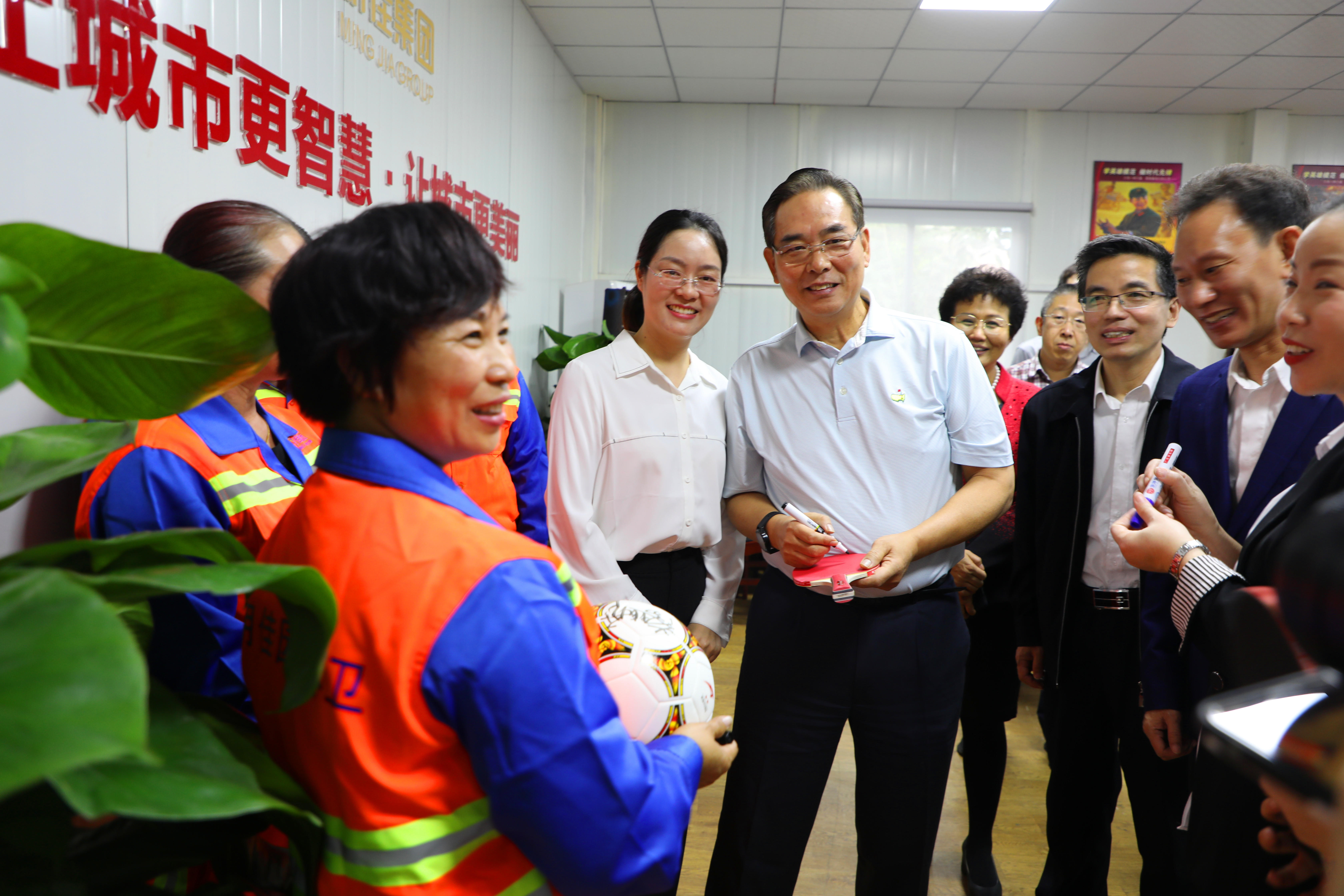 他肯定了明佳集團工會取得的成績,并親切慰問了現(xiàn)場的環(huán)衛(wèi)工人,與他們一一握手,并合影留念。