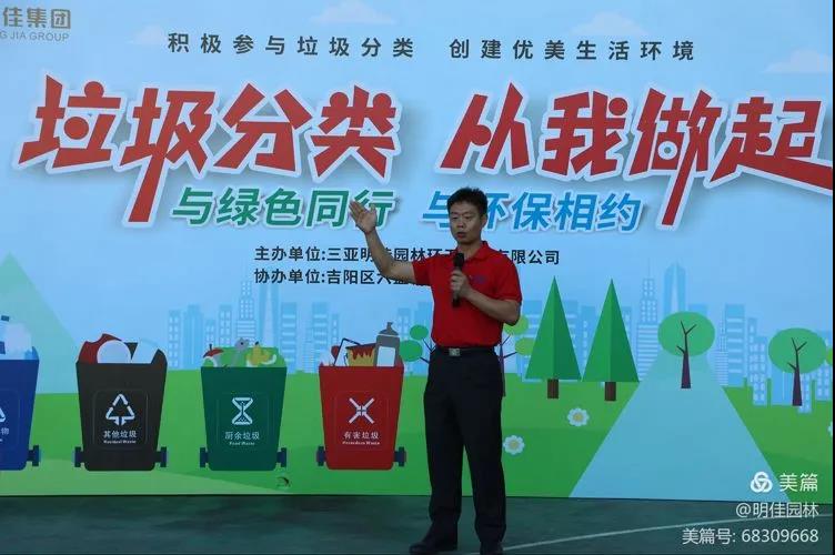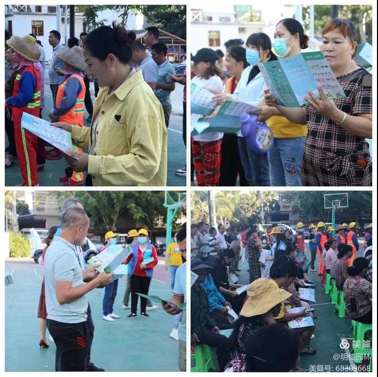 為了增加居民對垃圾分類的了解,養(yǎng)成垃圾分類的好習(xí)慣,助力三亞創(chuàng)建全國文明城市。2021年11月19日上午明佳集團(tuán)黨支部、工會、婦聯(lián)及共青團(tuán)在三亞市吉陽區(qū)六盤村聯(lián)合組織開展了主題為“垃圾分類,從我做起”的垃圾分類宣傳活動,倡導(dǎo)“與綠色同行,與環(huán)保相約”的生活方式,讓垃圾分類進(jìn)一步融入居民的生活。明佳集團(tuán)副總裁、總助、黨建辦主任、婦聯(lián)主席、工會主席及共青團(tuán)書記出席了本次活動。