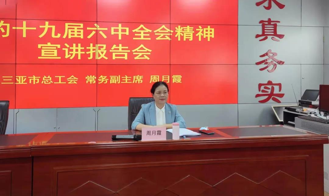 宣講會(huì)上,周月霞從黨的十九屆六中全會(huì)的重大意義、“兩個(gè)”確立、以“四個(gè)”歷史時(shí)期、“三次”飛躍、“十個(gè)”堅(jiān)持等方面,結(jié)合三亞市第八次黨代會(huì)精神和工會(huì)工作實(shí)際,對(duì)全會(huì)精神作了深入淺出的闡釋和全面系統(tǒng)的解讀。她表示,希望大家能夠通過(guò)學(xué)習(xí),更好地從黨的百年奮斗中看清楚過(guò)去我們?yōu)槭裁茨軌虺晒、弄明白未?lái)我們?cè)鯓硬拍芾^續(xù)成功,激發(fā)奮進(jìn)新時(shí)代、邁好新征程、建功自貿(mào)港的斗志和豪情。