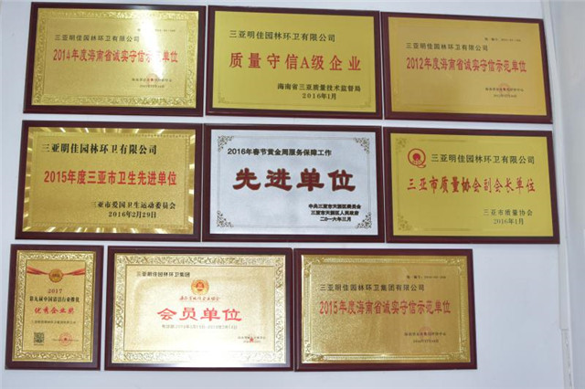 目前母公司連續(xù)五年被海南省企業(yè)信用評定中心評定為信用AAA等級單位,并榮獲中國清潔清洗行業(yè)國家一級資質(zhì)、城市環(huán)境衛(wèi)生經(jīng)營服務(wù)A級資質(zhì)、城市園林綠化三級資質(zhì),被中國清潔行業(yè)推選為國家三星級企業(yè)、十佳清潔服務(wù)企業(yè)、杰出貢獻企業(yè),并榮獲2016年中國清潔行業(yè)百強品牌,成為中國清潔行業(yè)常務(wù)理事單位、中國衛(wèi)生有害生物防制協(xié)會會員單位、中國城市環(huán)境衛(wèi)生協(xié)會會員單位、海南省衛(wèi)生協(xié)會理事單位、三亞市環(huán)境保護協(xié)會副會長單位,公司先后多次獲得國家、省、市獎勵和表彰40余次,成功在海南省股權(quán)交易中心掛牌,代碼:90777,并積極籌劃在新三板上市,已真正成為海南省環(huán)衛(wèi)行業(yè)的龍頭企業(yè)。